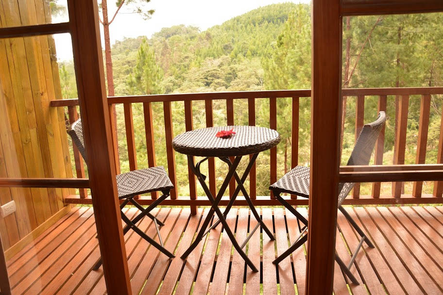 Vista: Bosque ,valle y montañas.